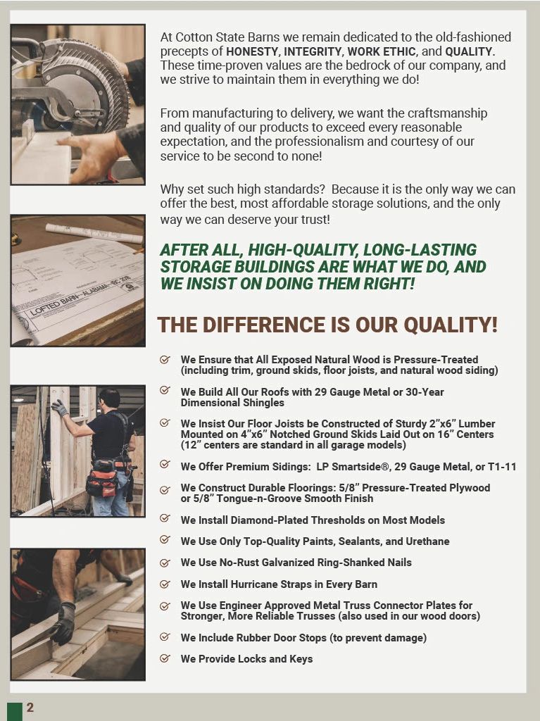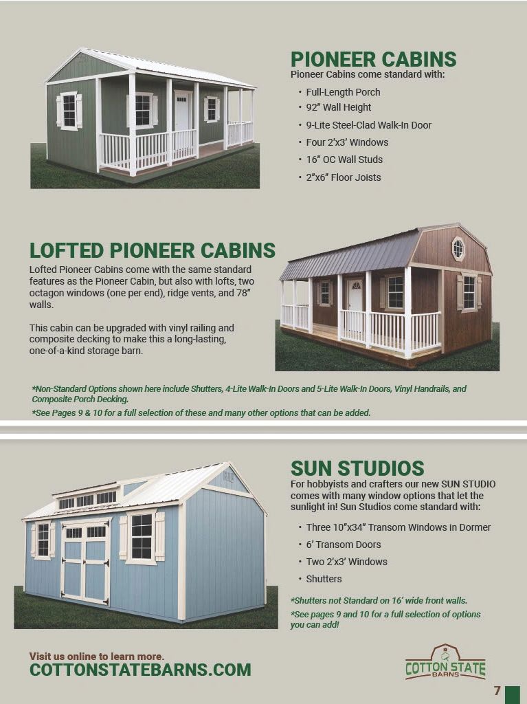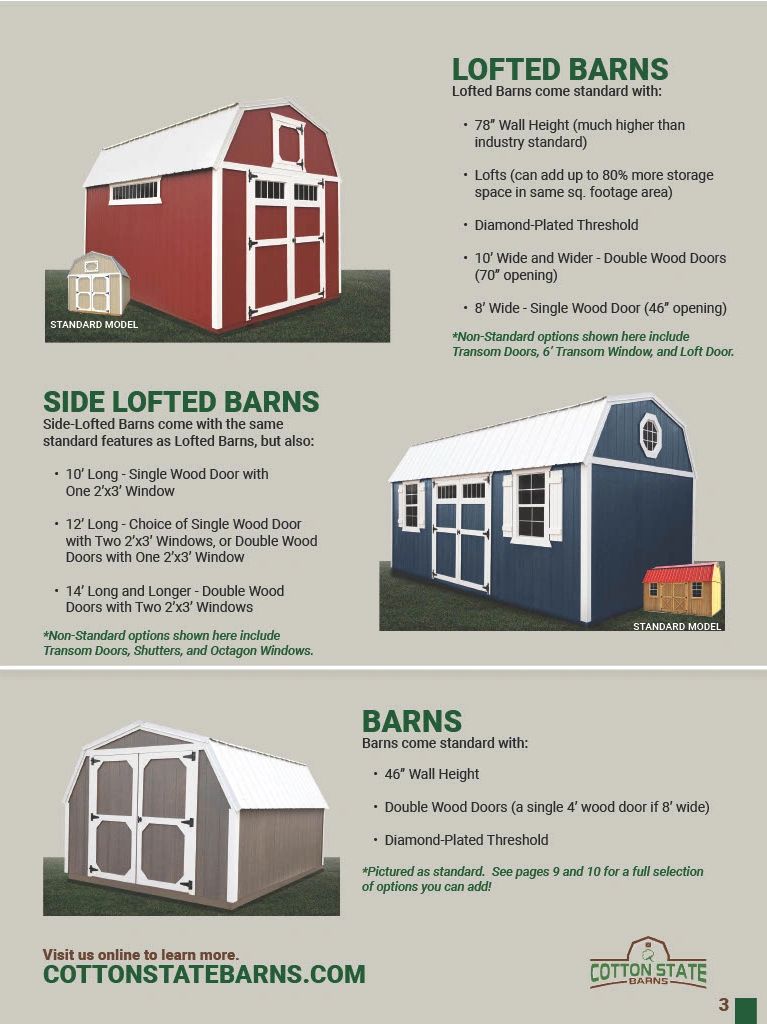 At Storage Nuts, we are proud to offer the full line of Cotton State Barns.